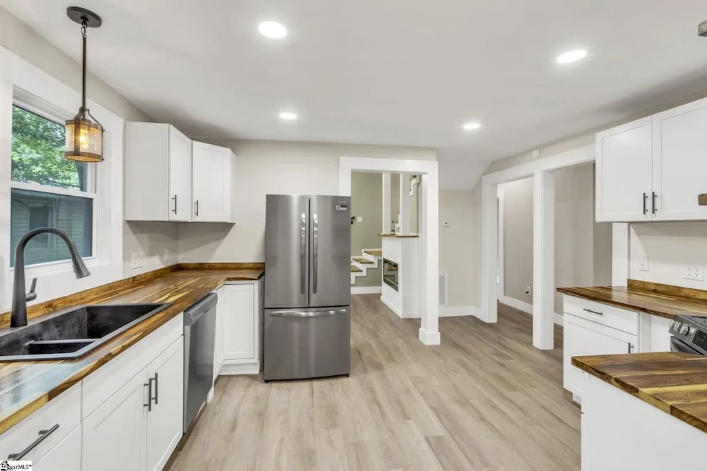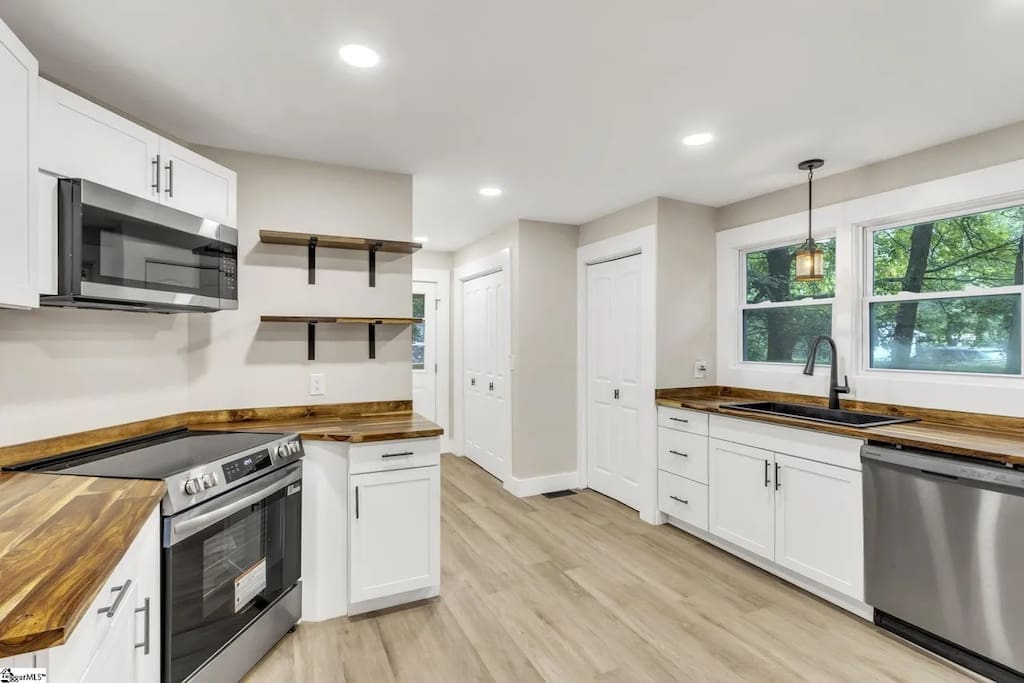 Come unwind at this thoughtfully designed space perfect for group trips, moments from the Swamp Rabbit Trail and Cherrydale Shopping. It's the perfect mix of comfort, style, & convenience. Perfect for a weekend escape or an extended stay. Feel right at home in this bright, clean, & modern home, with super comfy beds, well-stocked coffee station with dual Keurig & drip coffee maker & fun extras. Located just minutes from downtown, local parks, and some of the best hidden food spots in town.